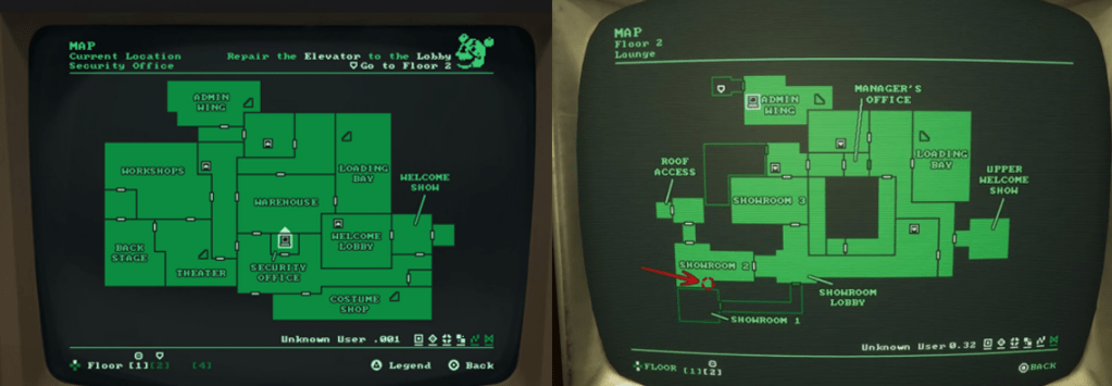 Scooper Ending: In Chapters 1, 3, 5, and 7, the player can find camera monitors that, when the map is zoomed out, allows them to access a hidden camera that does not correlate to any camera on the current map. For each of the four cameras found this way, they display a square, wooden door that then opens upon viewing. If the player has found all four hidden cameras, the Mimic will appear with a mascot costume during the ending chase sequence. During the chase, if Cassie goes left at one of the forks, she will find the doors opened via the cameras. At the end of the passage is a replica of the Scooping Room. Cassie can then run behind the glass window and activate the Scooper in time for it to fill the room with smoke and grab the Mimic. When the smoke clears, the Mimic is collapsed on the floor and the credits begin to roll.