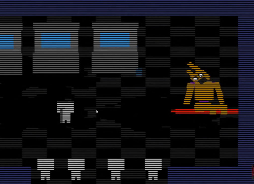 With William Afton success in getting a human spirit to possess an animatronic, he went back to their first restaurant and started wearing the Spring Bonnie suit to lure children and kill them in a secret room. Which had been placed due to the danger of the springlock suits crushing people inside them. If an employee was wearing the suit and it malfunctioned, they would need to make their way to the secret room, so the children wouldn’t see them bleeding out and traumatising the children. Even if it was the 80’s I still don’t think this should have been okay… Anyway, William would take the children to the secret room due to it not having security cameras and the animatronics did not know it existed as it wasn’t programmed into their schematics of the building.