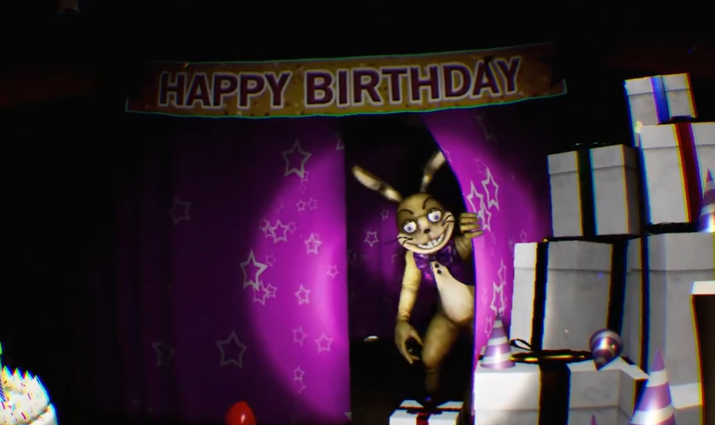 The player must yet again survive the night, now in the new Fazbear’s Fright: The Horror Attraction. Unlike the previous games, there’s only one animatronic that can attack the player, Springtrap. However, there are six Phantom animatronics, each with unique behaviors that, if the player fails to avoid, will attack the player and hinder their systems, allowing Springtrap to move faster.