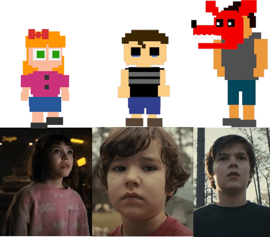 Family structure is the same but with different back story/family – eldest brother (Mike Schmidt not Michael Afton), younger brother (Garrett Schmidt instead of Crying Child Afton) and youngest sister (Abby Schmidt instead of Elizabeth Afton).
